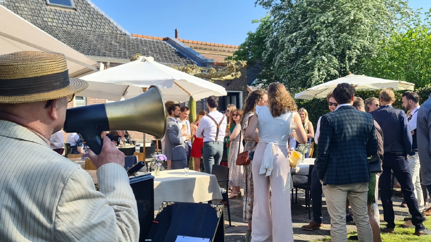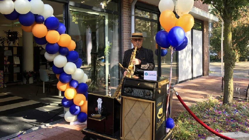 In de sfeer, kleding outfit en tijdsbeeld van de Roaring 20-ties (Roaring Twenties). Mobiele live muziek voor elke gelegenheid! Saxen, klarinet en zang daarbij een begeleiding van een volledige ritmesectie op mp3-speler,een volledig dixielandorkest